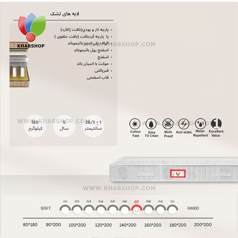 | میزان نرمی - سفتی از 1 تا 7 | 5-نسبتا سفت |