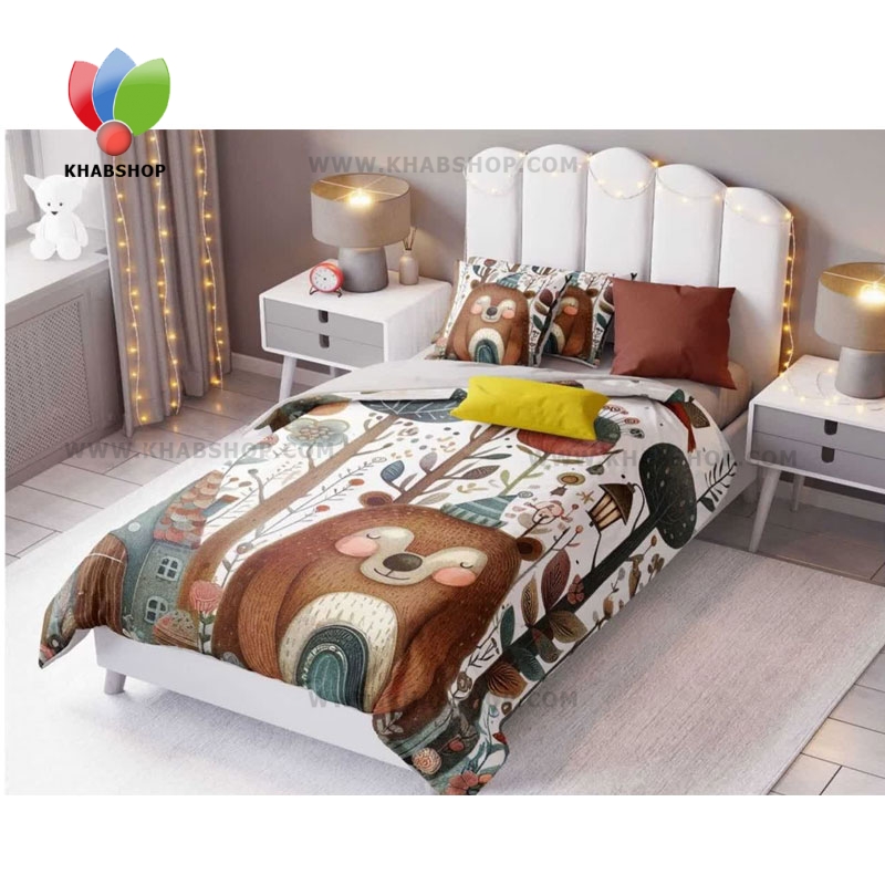 روتختی سایز ۲۰۰×۹۰ با تصویر خرس خندان در منظرهای جنگلی، همراه با درختان، خانه و رنگهای گرم مانند زرد و قهوهای، فضایی شاد و امن برای کودک شما فراهم میکند. طراحی فانتزی و رنگهای ملایم آن، مناسب برای اتاق کودک و ایجاد حس آرامش قبل از خواب است. این محصول با کیفیت بالا و لطافت پارچه، هم زیباست و هم کاربردی.